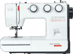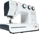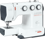 The bernette 35 is a mechanical sewing machine with no computerised controls. The width, length and pattern of the stitch is easily set by turning the three knobs. The tension can be adjusted during sewing, using an easily accessible wheel. The bernette 35 also has an automatic, 1-step buttonhole function, which is quick and easy to use. With a total of 23 stitches, including both utility and decorative stitches, you can bring your creative ideas to fruition quickly, easily and with excellent stitch quality. The bernette 35 includes seven snap-on presser feet.